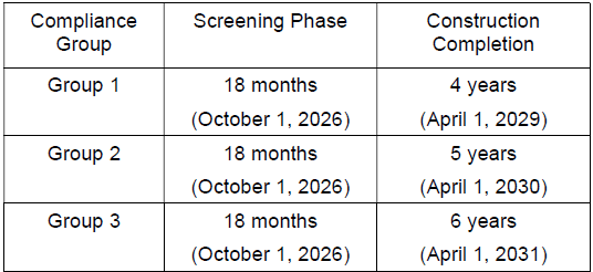 The screening phase for all groups must be completed by October 2026. Failure to meet these deadlines could result in fines, penalties, or other enforcement actions.